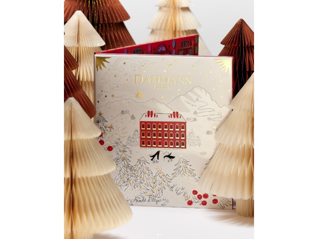 Uvnitř najdete 25 čajových sáčků Cristal® s výběrem 24 vůní a čajových receptur – od oblíbených vánočních směsí Dammann Frères až po nové čaje, jako je ovocný a delikátní Noël en Laponie, zelený čaj plný severské svěžesti.