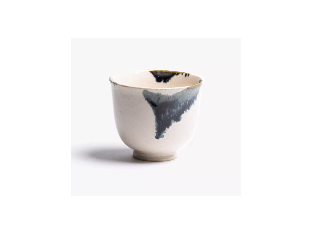 Tento porcelánový šálek vyrobený řemeslným způsobem v Japonsku má strukturovaný povrch s efektem akvarelu.