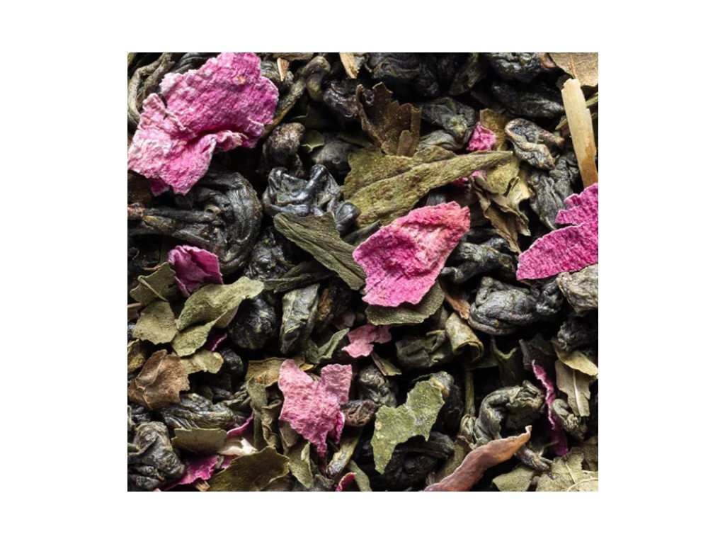 Ingredience: zelený čaj (Camellia sinensis), máta, esenciální olej z růže, okvětní lístky.