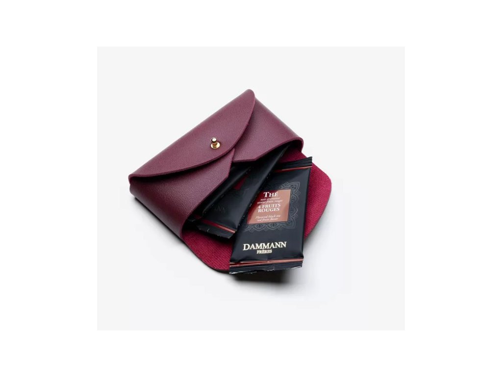 Pouzdro je vyrobeno z umělé kůže s uzávěrem z niklu. Pro 6 čajových sáčků.